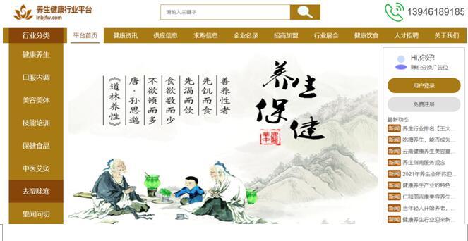 平台囊括了健康资讯、供求信息、企业名录、健康饮食、以及各类养生产品,不管是普通消费者,还是行业人事,都能够从中获取足够的信息。平台的重点是传播知识,传播资讯,让更多有需求的人能够从正规、专业的途径获取养生信息、知识,避免上当受骗。